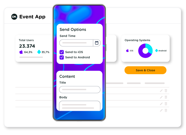 Be in control of the mobile visitor experience from A to Z. Wave goodbye to countless logins, take advantage of one integrated system and grow your event.
