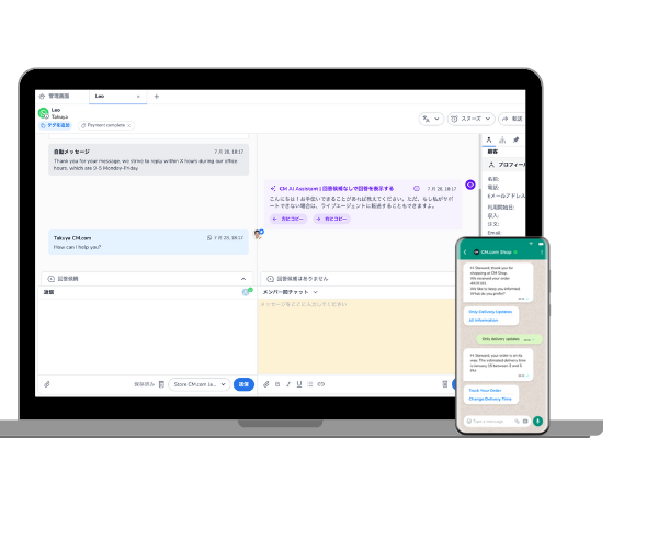 CM.comのMSCはログインをするだけで管理画面からWhatsApp Business企業アカウントでWhatsAppユーザーとやり取りできるクラウドサービスです。