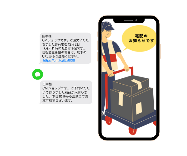 ほぼ確実に読まれるSMSを配達先に送信することで、当日キャンセルや急な予定変更などに対応できます。